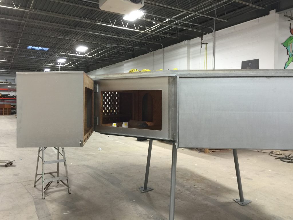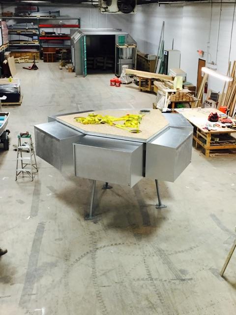For an Agricultural Museum, we designed a stainless steel, aluminum, and fire-rated plywood custom chicken coop based on the model of the Mars Landing Probe. Our design included six hinged side boxes for easy access and removal of eggs, a viewing dome for museum patrons to observe the interior of the coop, and a custom-painted exterior.