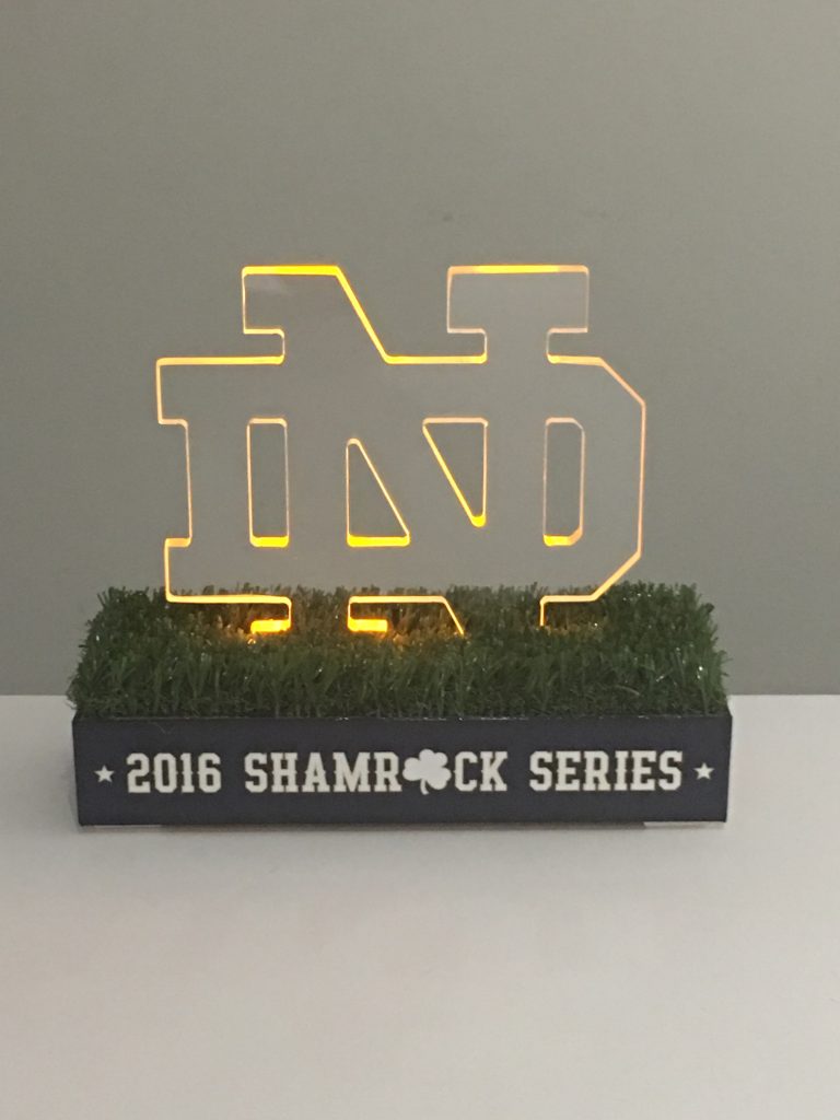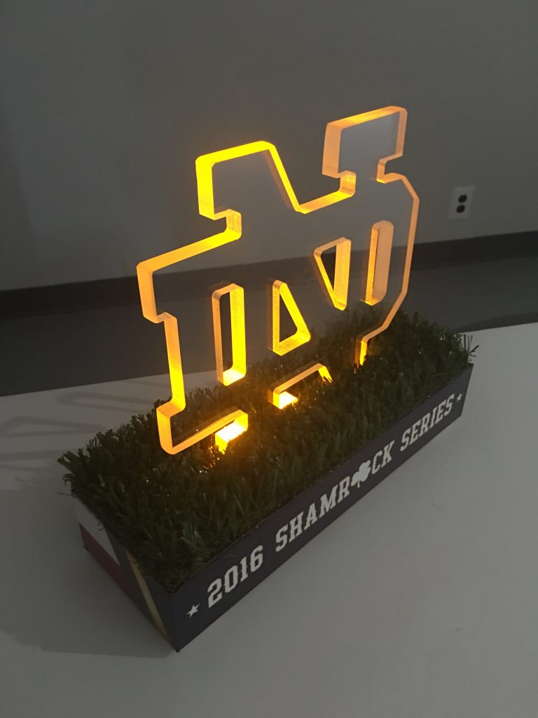 The production of these various displays feature the use of LED lighting, from edge lit desktop logos in association with Notre Dame, to awards in the NBA All Stars, to tradeshow displays such as the 10-foot-long Lyft car.