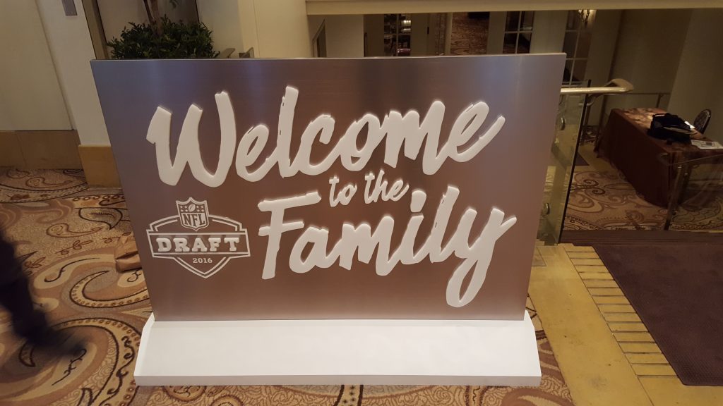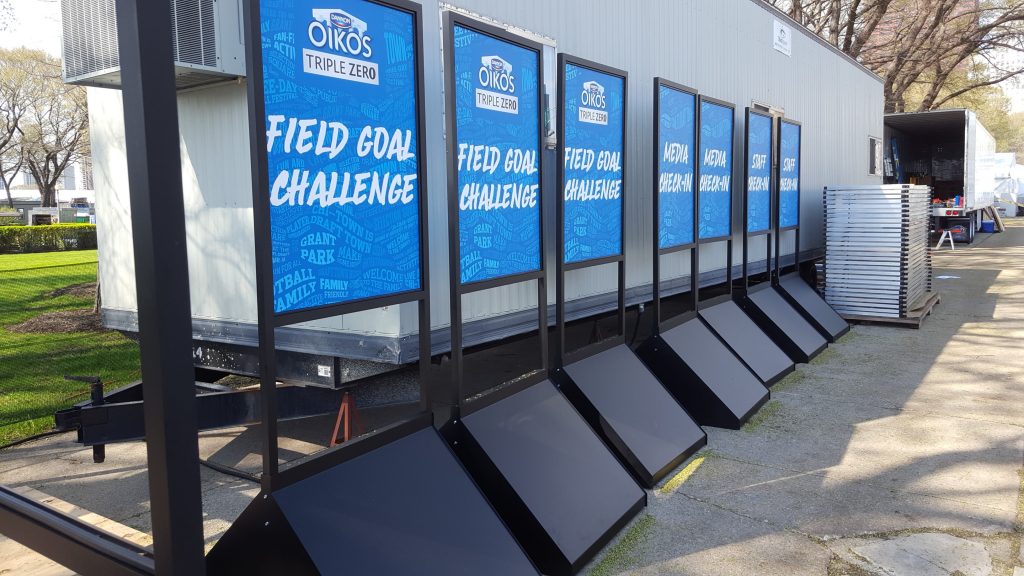 For the 2016 NFL Draft in Chicago, we were tasked with fabricating and installing the free-standing way-finding signs for direction throughout the venue, all promotional tent and booth headers, and “Welcome” entrance signage.