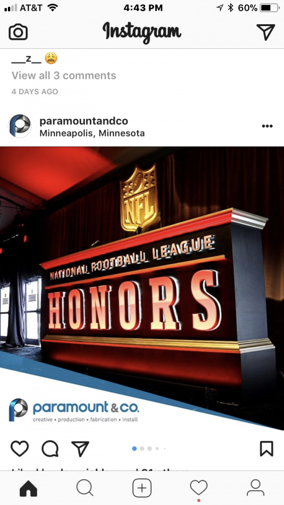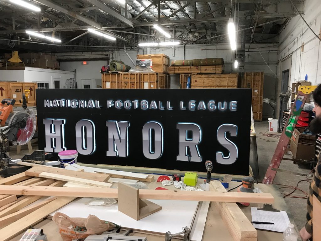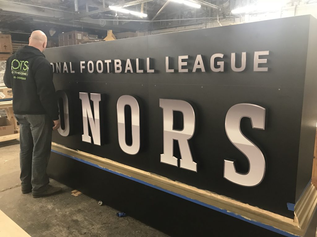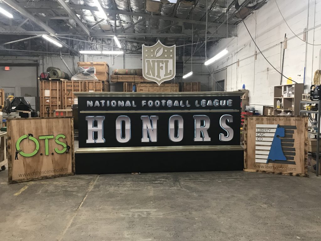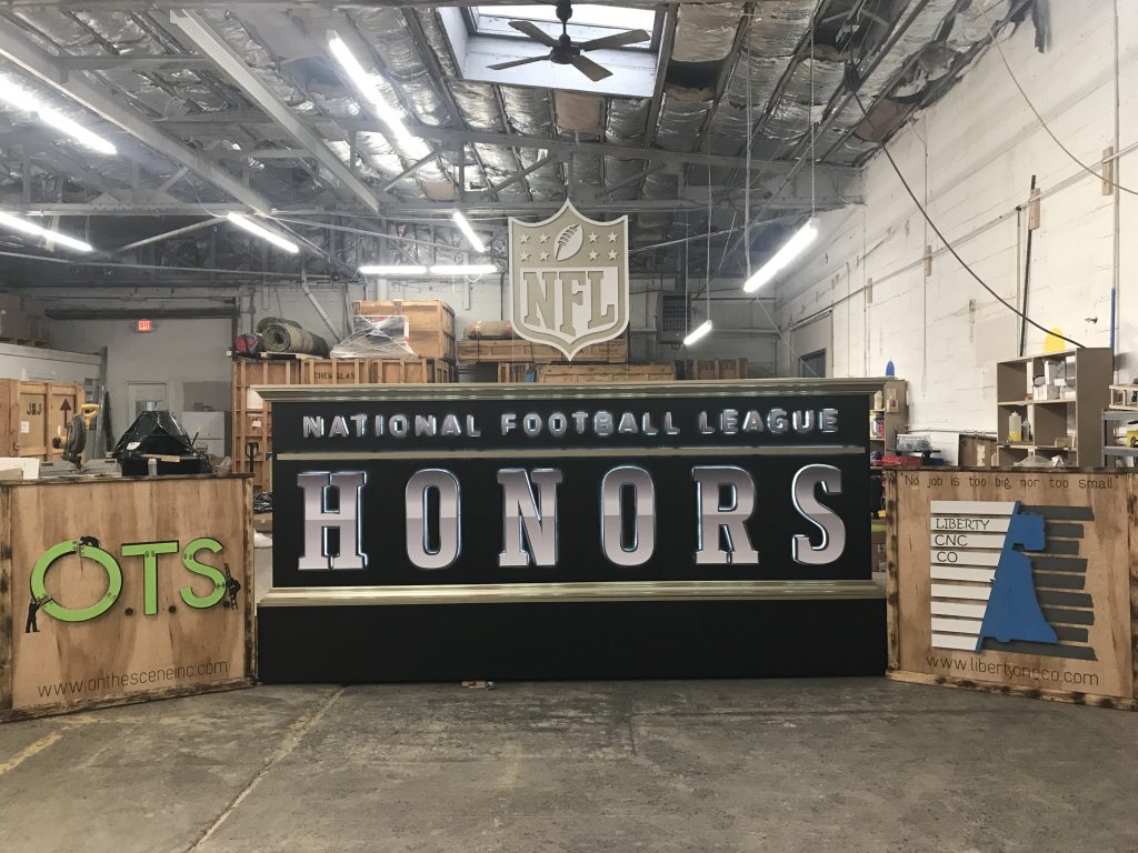At the 2018 NFL Honors Ceremony in Minneapolis, Minnesota, we fabricated an entrance display to introduce the event and provide a memorable photo opportunity for guests. The display is complete with a “floating” NFL shield, dimensional letters with standoffs, and LED halo lighting. The entire display is collapsible into three cabinets with interior quick-connection wiring.