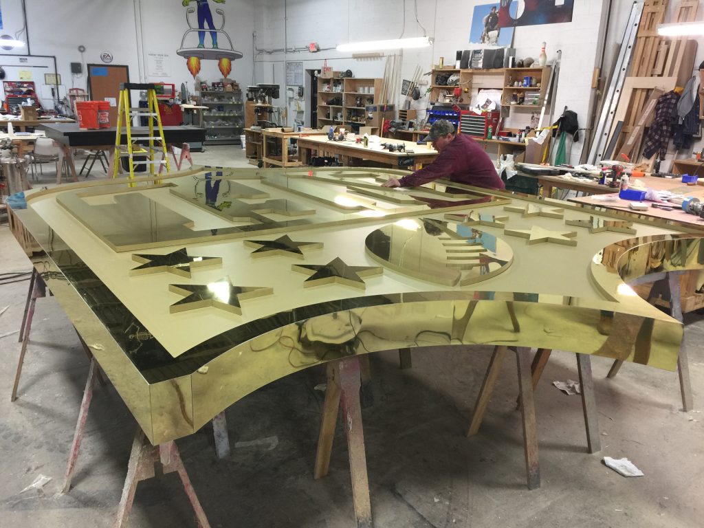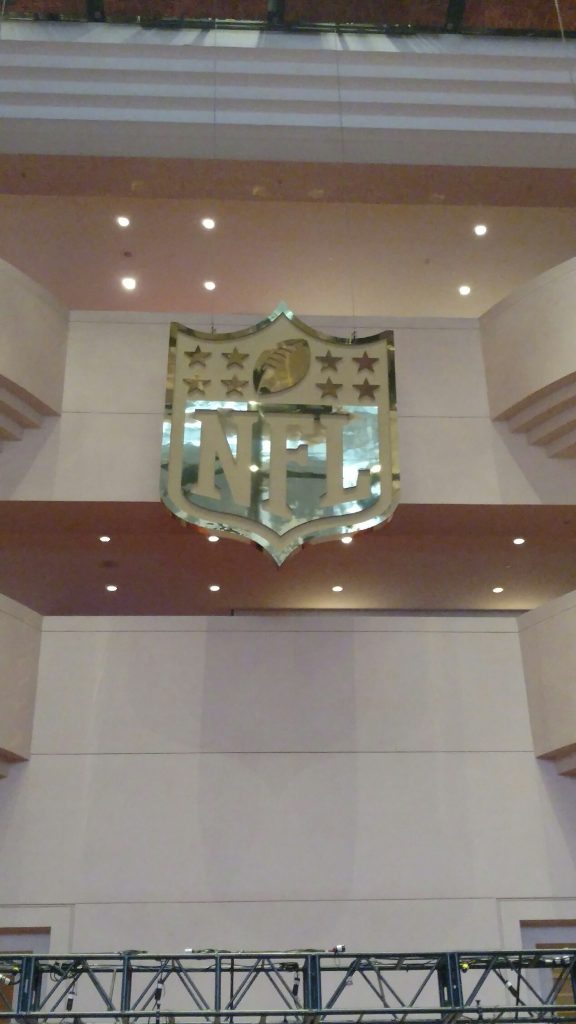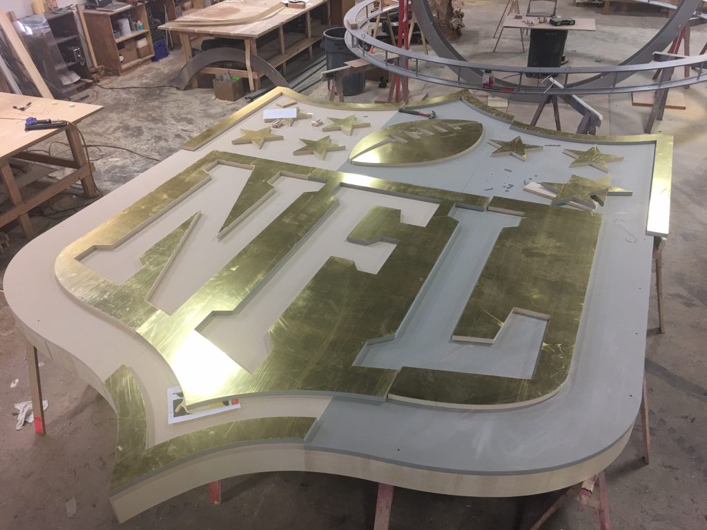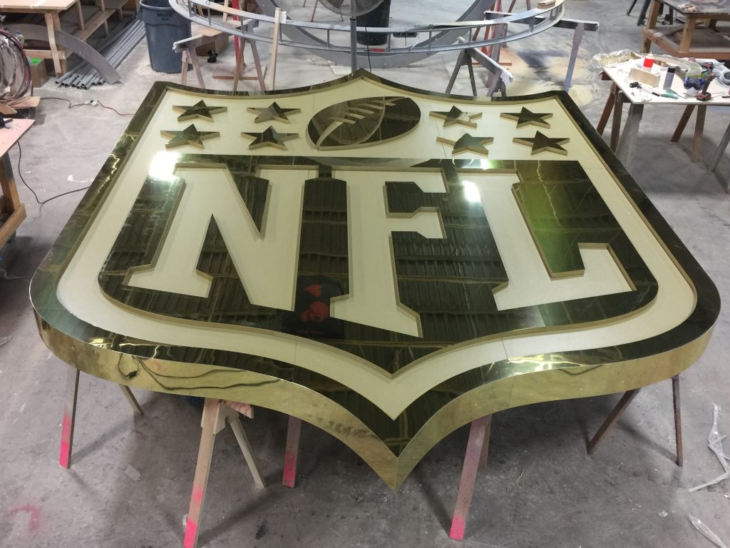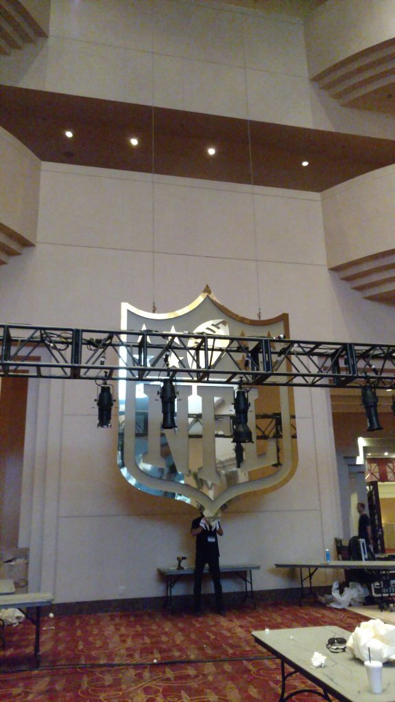 For the 2017 NFL Honors Ceremony in Houston, Texas, we fabricated a fifteen-foot-tall mirrored gold NFL logo shield to welcome guests in the venue lobby. Fully collapsible into six large pieces, the shield is easily assembled and taken down for storage and reuse.